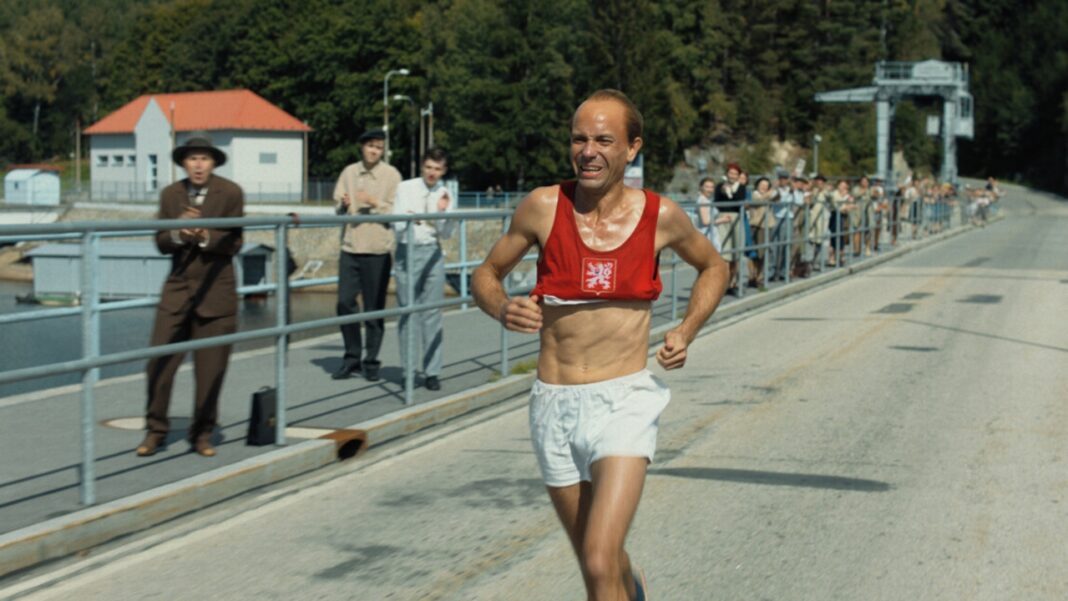 Aliás, o tom de ‘cruzeiro’ que se sente ao longo do filme, talvez comparável a uma corrida de longo curso, pode ser justificado pelo facto de Ondrícek dominar completamente o tema e a vida de Zátopek, o histórico campeão com uma forma particularíssima de correr (as suas caretas são famosas!), além de ser o único atleta a vencer três medalhas de ouro (nos jogos Olímpicos de Helsínquia, em 1952, nos 5 km, 10 kms e maratona, na primeira vez que participava em tal prova). Até por se tratar de um projeto de longa gestação (por duas vezes adiado), permitindo-lhe inclusive fazer um documentário sobre o campeão checo, contemporizando com as nuances ou os insondáveis compromissos políticos que levaram Emil a pactuar com o regime soviético na altura em que ocupava a Checoslováquia, e a tornar-se mesmo uma voz de exaltação para o seu povo. Não esquecendo, naturalmente, as razões pelas quais o fez – sabendo que de outro modo poderia nunca mais vir a correr em provas internacionais -, embora recordando também os momentos em que sublinhou o seu patriotismo, por exemplo, quando se recusou a acompanhar a comitiva a Helsínquia ao perceber que o companheiro Stanislav Jungwirth ficava para trás, por o seu pai estar numa prisão comunista.