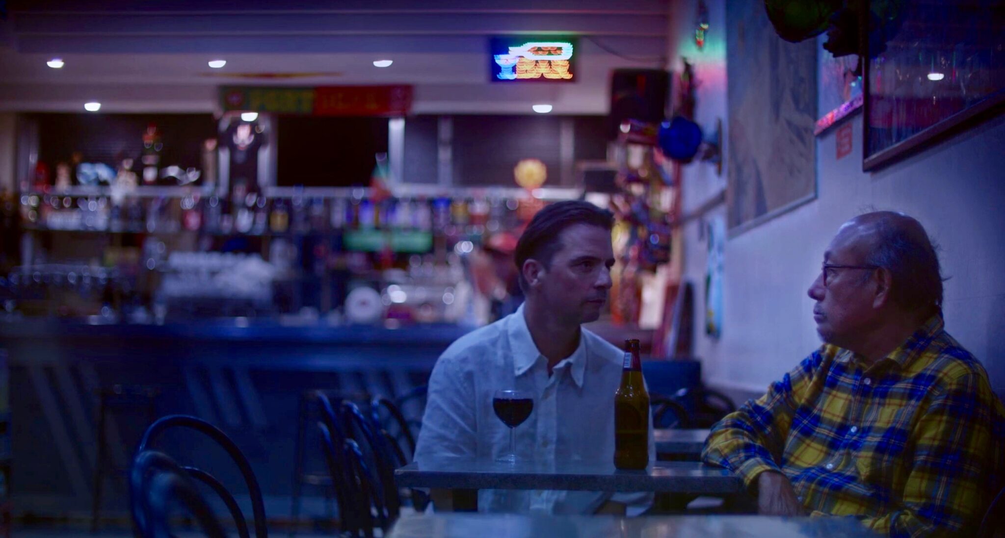 Aos 23 min do filme, há uma cena simples e envolvente que nos dá pistas do passado do protagonista, ele está sozinho num bar a tomar uma cerveja, um estranho chega e senta-se perto dele para tomar um tinto. E então, o homem narra-lhe uma história: