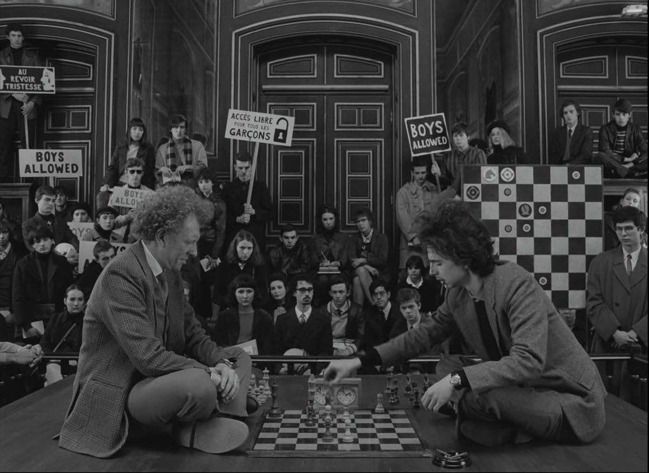Alguém mais cínico poderia considerar que, por esse motivo, o filme se trata de uma autoparódia, mas eis por que razão não é justa essa crítica: são verdadeiros os riscos que Anderson toma ao adaptar o seu cinema a este formato, tentando levá-lo até onde nunca tinha ido. Outra das grandes características da sua filmografia que aqui é subvertida é a cor, sendo a maioria do filme gravada a preto e branco. É espantoso que mesmo sem esse elemento, tão importante na estratégia visual de todos os seus filmes, o estilo do cineasta permanece inconfundível, não porque se mantém exatamente igual e condenado à repetição, mas porque transparecem novas particularidades, entre elas a textura das imagens. No rosto dos protagonistas, no guarda-roupa, na pedra e na madeira dos cenários, na luz. Até o uso pontual de cor é original, não seguindo uma lógica linear, como se fosse um leitmotiv, mas consistindo antes em apontamentos de cor afecionais, que surgem por motivos emocionais para pontuar certos sentimentos. Assim, “The French Dispatch” é uma obra notável no cânone de Wes Anderson, e não apenas uma reciclagem de velhos truques (dentro do estilo pastiche de Anderson, que é sempre repleto de influências e referências culturais claras).