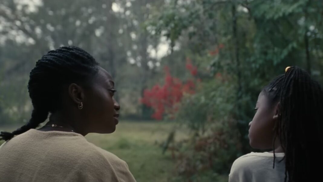 Sheila Atim embala uma criança sem esnconder a angústia de sua personagem diante de um solitário Mississippi