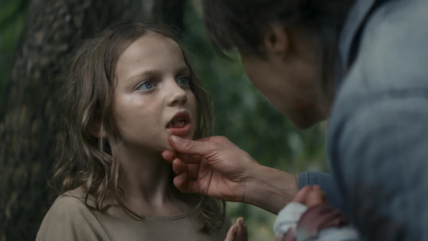 O peso do isolamento, o desconhecimento da vida “fora dali”, a superstição e temor perante o que vem de fora regem esta comunidade patriarcal, liderada por um ancião assustador (Ulrich Matthes) que relutantemente aceita que a dita criança possa ficar até perder os dentes de leite (daí o título). Se tal não acontecer, isso apenas revela que a criança é um lobo disfarçado que tem de ser afastado deste local, repleto de bosques e riachos, que criteriosamente os aldeões patrulham munidos de armas, sempre vigilantes contra eventuais ameaças externas.