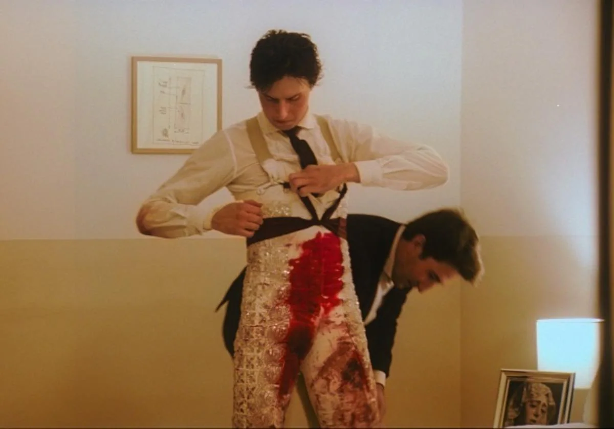 Há uma frase definidora da dimensão política de “Tardes de Soledad” (Tardes de Solidão), dita por um dos integrantes da equipado toureiro peruano Andrés Roca Rey depois dele sair de uma luta brutal: “Os seus colhões são maiores do que esta arena“. Signos do que seria a virilidade na ótica espanhola transbordam pelos frames do ensaio documental do catalão Albert Serra, ao mesmo tempo em que são sutilmente demolidos a cada nova sequência, de planos longos. Vários desses planos fazem close no rosto desse “guerreiro” (termo como é classificado). O signo de “macheza” do seu ofício é contrastado por imagens do seu ritual de preparação para cada tourada, ao vestir collants apertados. São roupas habitualmente associadas ao vestuário feminino. Ele não os veste sozinho, mas com a ajuda de outros homens, que comprimem a veste no seu corpo, apertando-o.