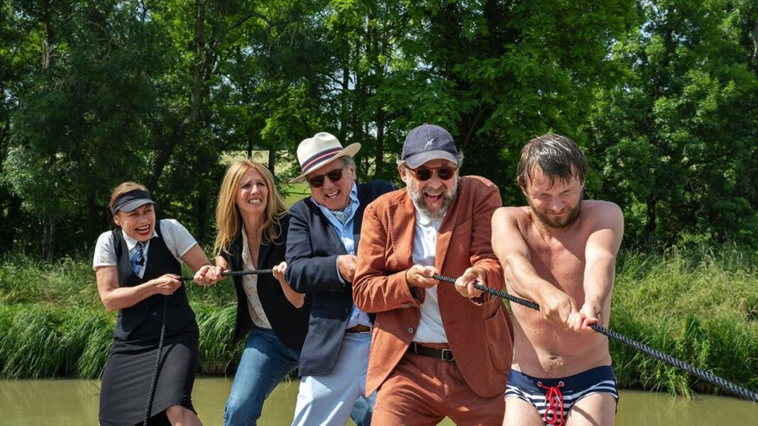 Já sabíamos que Bruno Podalydès ganhou gosto pelo navegar, ainda que num caiaque, em “Comme un avion” (2015), mas neste “La Petite Vadrouille” esse prazer ganha a forma de um capitão de uma embarcação, capaz de levar nela, rio abaixo, uma série de figuras endividadas que procura aplicar um golpe a um ricaço (Daniel Auteuil).