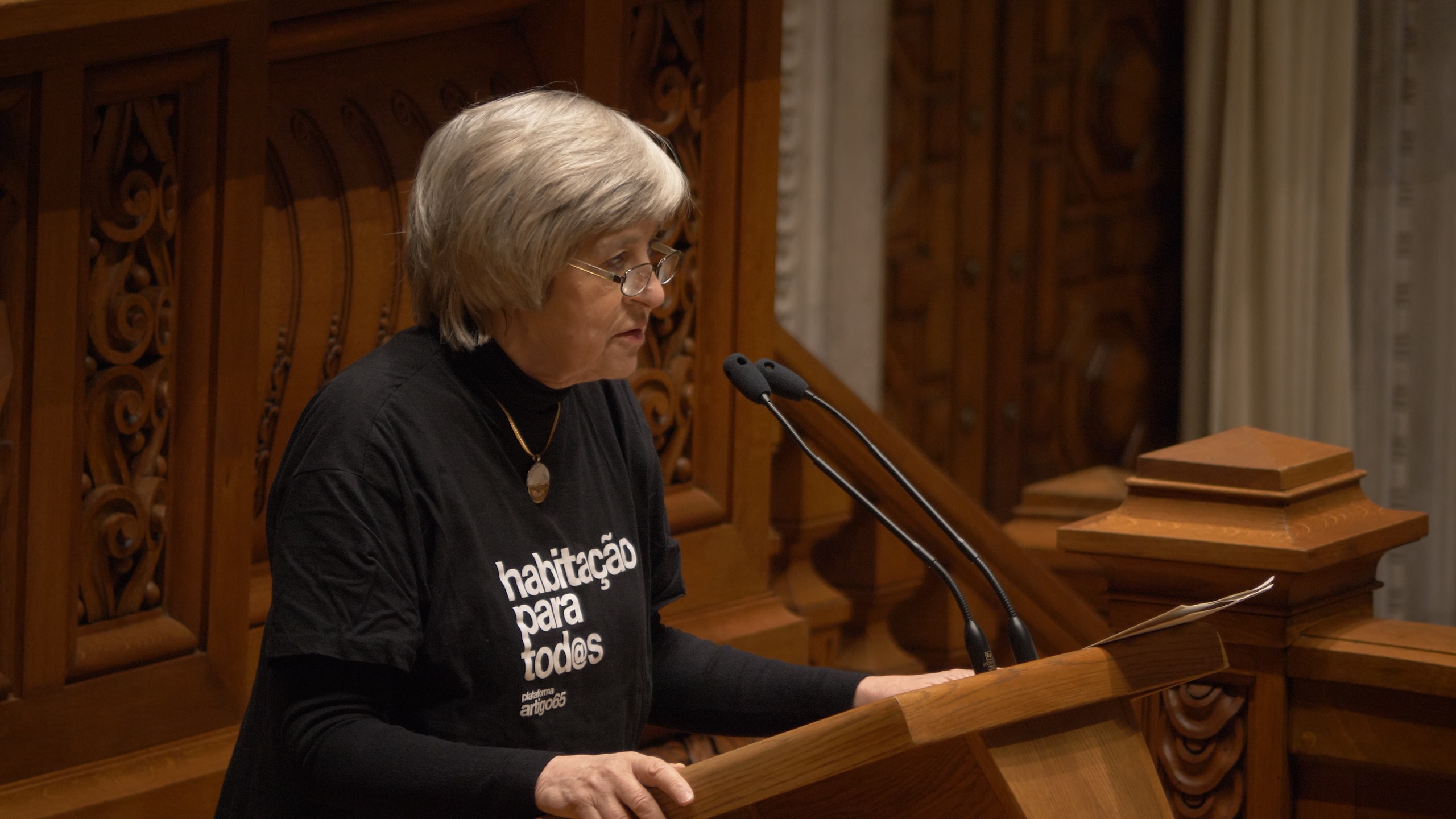 Sempre seguindo a via observacional e sem interferência da câmara, vemos muitos dos parlamentares atuais em cena, incluindo Pedro Nuno Santos, irritado e sarcástico com uma atitude do PSD para adiar a decisão da Lei de Bases da Habitação para outra legislatura, ou Sérgio Sousa Mendes, com dificuldades em organizar uma reunião devido à ausência de um ministro. E vemos um grupo de jovens a serem recebidos – com um high five – no parlamento por Ferro Rodrigues, além de um momento hilariante quando um conjunto de trabalhadoras do parlamento, depois de organizarem a mesa de jantar para uma receção protocolar, descobrem que um dos convidados afinal não vai, o que vai levar a um reboliços nas posições na mesa. E há também duas intervenções registadas que facilmente se tornam a melhor mensagem que Rui Pires poderia revelar: uma no dia 25 de abril, onde relembram os tempos da ditadura e as falhas da democracia atual; e outra, de uma jornalista, que fala abertamente sobre o racismo sistémico e estrutural. São dois discursos poderosos e que sublinham logo a primeira percepção que temos sobre o parlamento quando o vemos pela primeira vez neste documentário. Ele continua a ser demasiado masculino e branco nas posições de poder, e feminino e negro (vejam-se as funcionárias da limpeza) nas posições verticalmente isentas de qualquer poder de decisão.