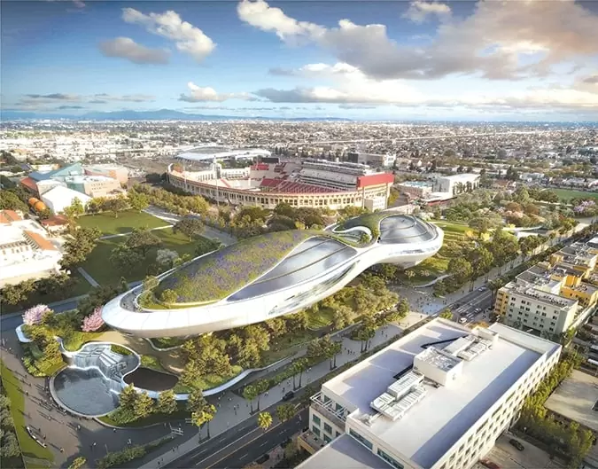 O museu, em construção no Exposition Park, em Los Angeles, abrirá em 2026 com entre 30 e 40 galerias. Projetado pelo arquiteto Ma Yansong, da MAD Architects, o edifício de 28.000 m² ergue-se como uma fita de Moebius — uma forma contínua sem começo nem fim — e será integrado num campus de 44,5 hectares com espaços verdes desenhados pelo Studio-MLA. O espaço contará com galerias amplas, dois cinemas de última geração, áreas dedicadas à aprendizagem, restaurantes, lojas e espaços para eventos.
